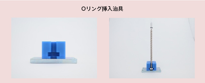 特注治具の製作ならエス・エヌ・ジーにお任せください!今回の事例では、お客様より「Oリングを広げシャフト溝へ挿入する組付け工程の作業時間が人によって違っているので治具を作って解決したい」とご相談いただきました。そこで、当社にて詳細をヒアリングの上、特注のOリング挿入治具を設計・製作しました!予め当治具のキャップ内にOリングをセットし、シャフトに被せて押し込むだけで、簡単に挿入することが可能となりました。結果として、組付け作業の安定化・作業者の負担軽減・作業時間の短縮を実現しました!