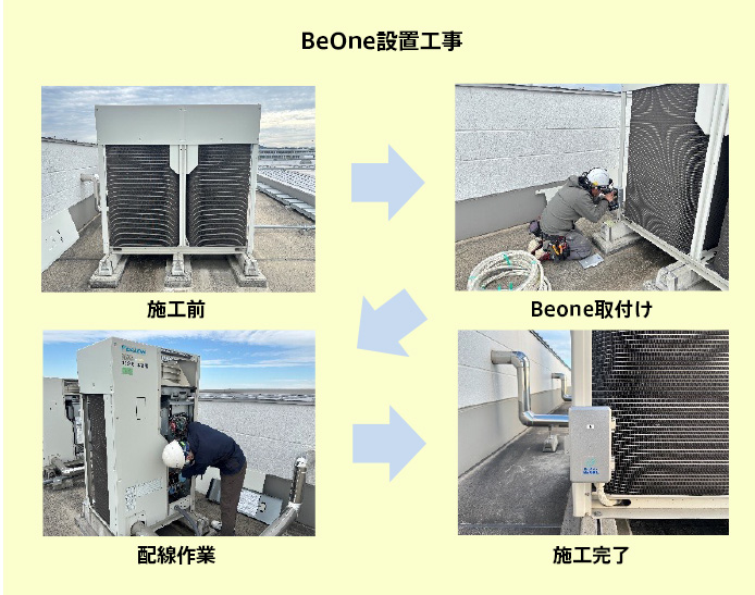 エアコンは快適な作業環境を実現するために欠かせませんが、大きな電力を消費します。そんなエアコンの電気使用量の大部分が“圧縮機”の稼働です。今回はこの圧縮機の省エネ化を実現するエアコン省エネ制御装置『BeOne』をご紹介します。当製品を用いることで、電流を計測しながら、圧縮機の稼働状況を常時監視し、圧縮機を傷めないように最適なタイミングで30分に1回4~5分間程度制御します。これにより、快適な室内温度を維持しつつ、電力消費を約15%削減します。また、各機器個別に360日間の削減データを記録保存し、省エネ効果を「見える化」します。実際に下記事例では、お客様よりご相談をいただき、16台の室外機へ導入工事を実施しました。その結果、既設設備を変更することなく運転効率を向上させ、なんと年間約232万円の電気料金削減を実現しています。実際にどのくらいの効果が出るのか導入前に試算書をお出しすることも可能ですので、少しでも気になった方は、是非お問合せください!